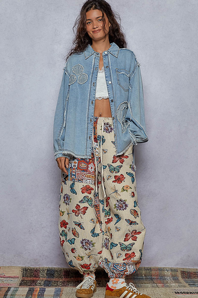 Lace Floral Gauze Button Down