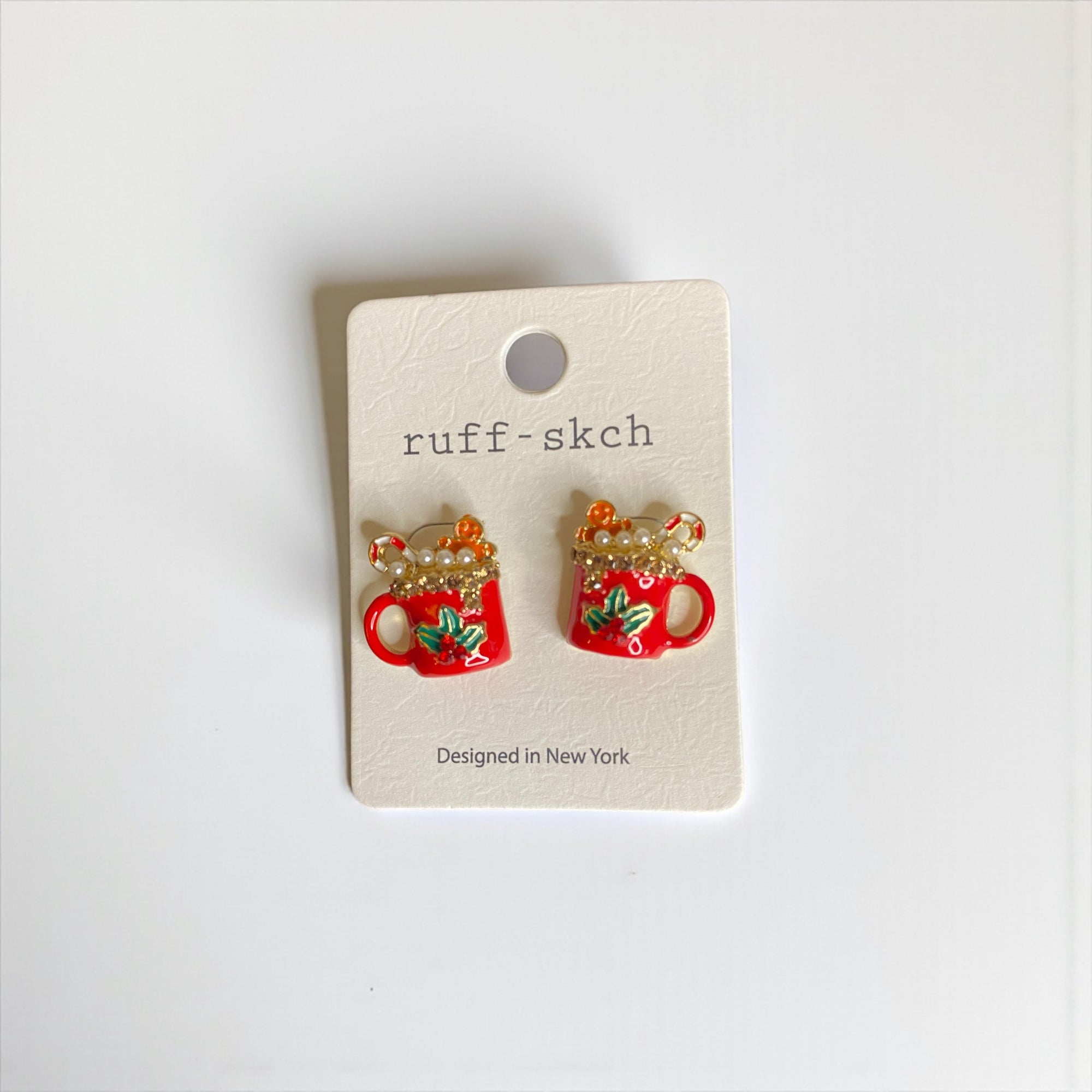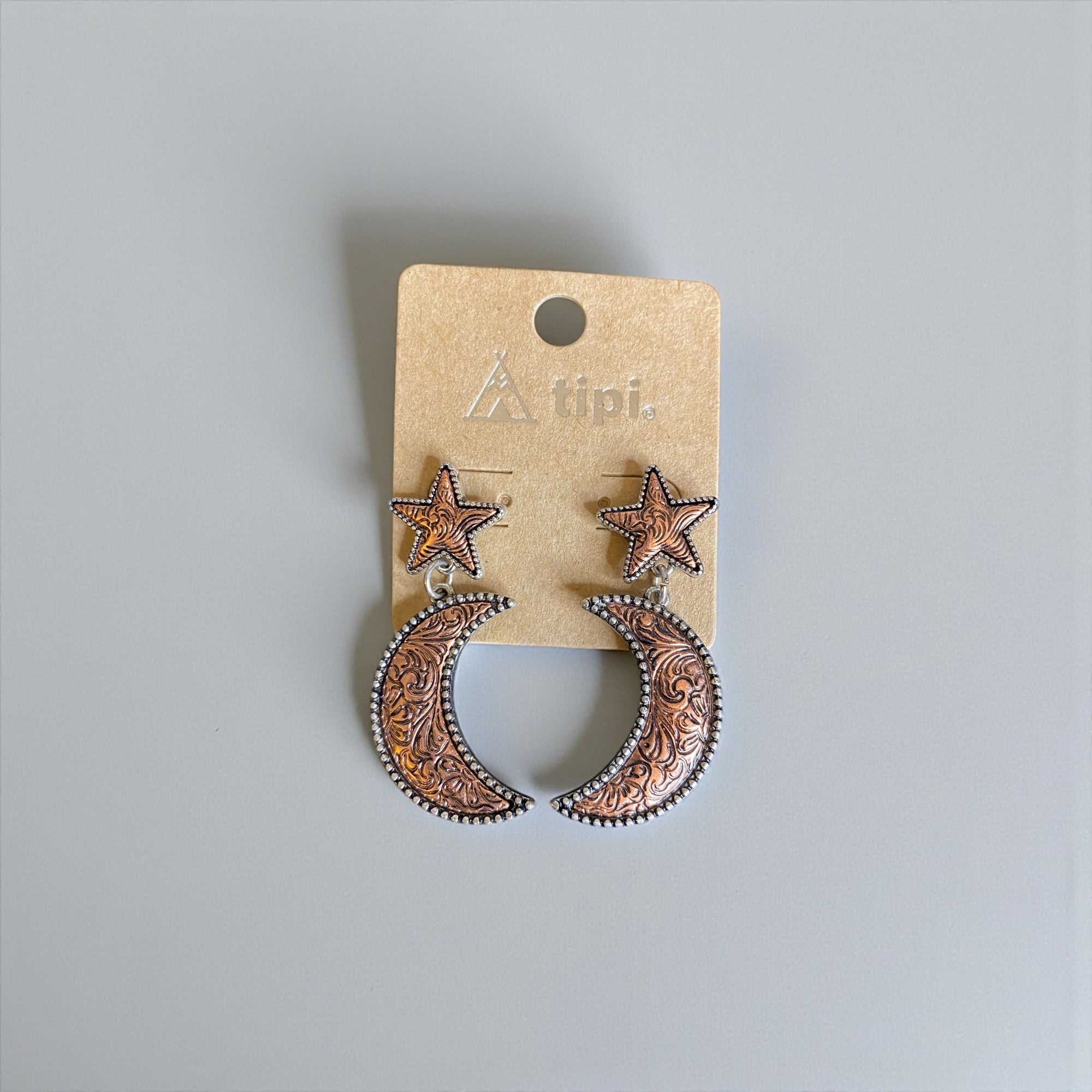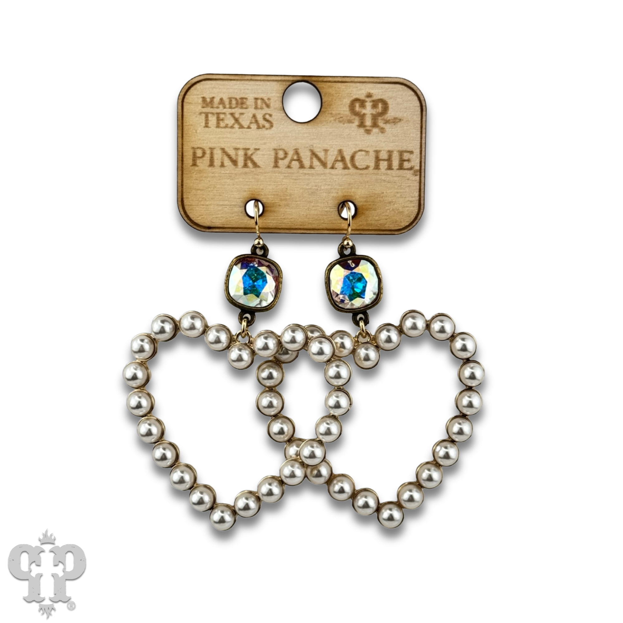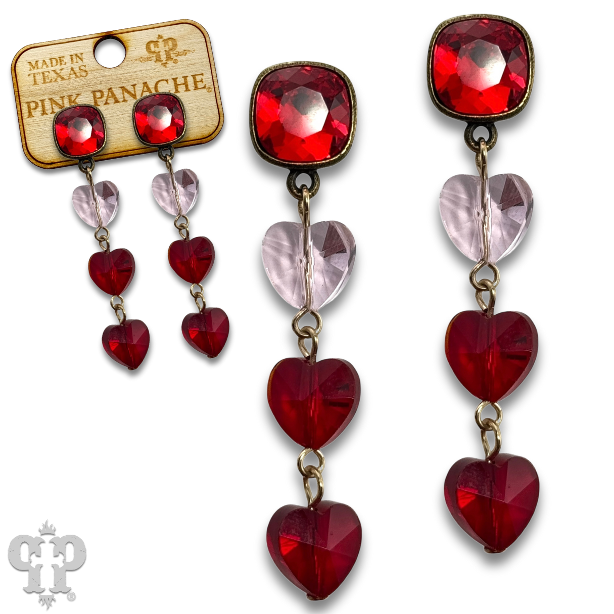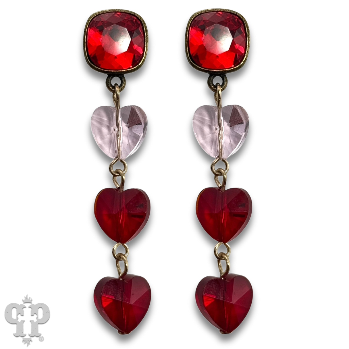 Two tone hammered heart earrings featuring Austrian crystal posts