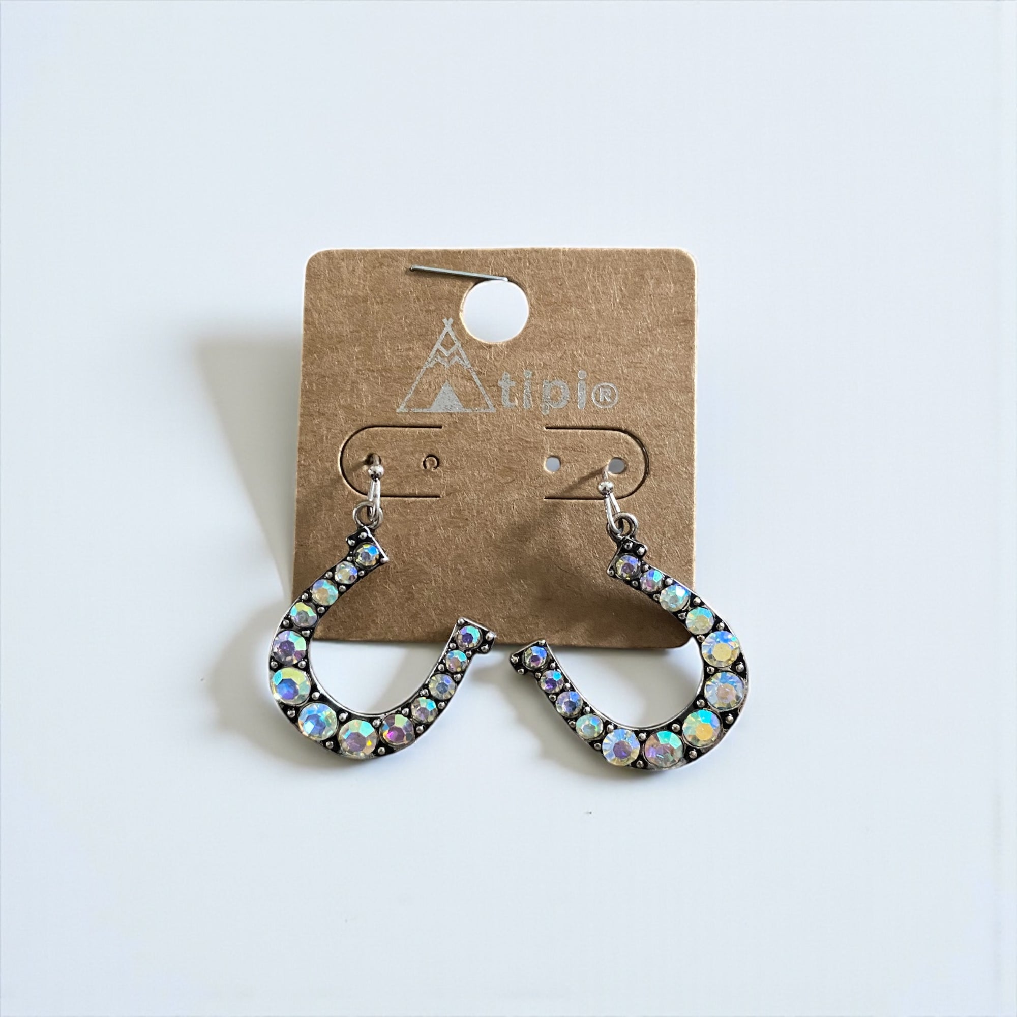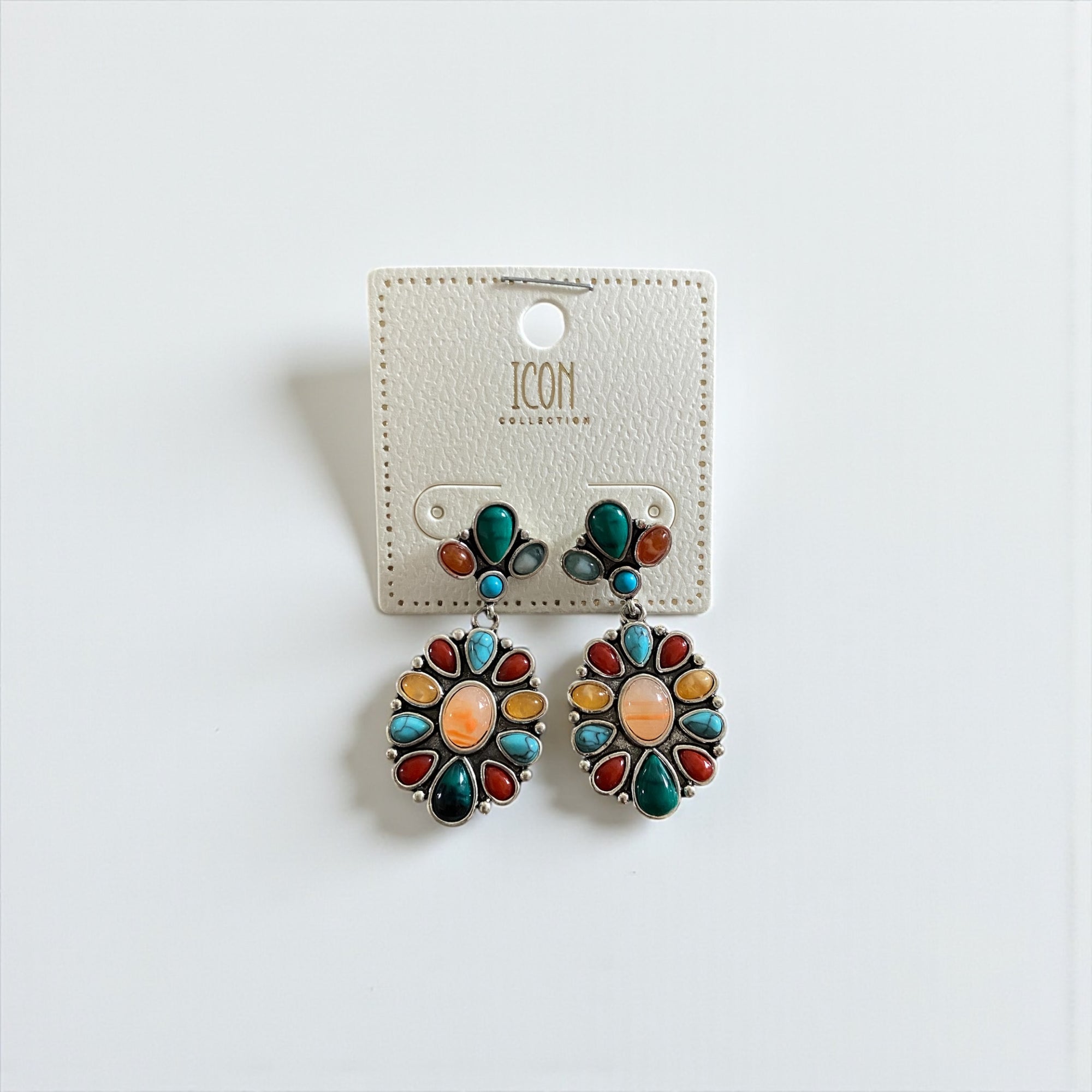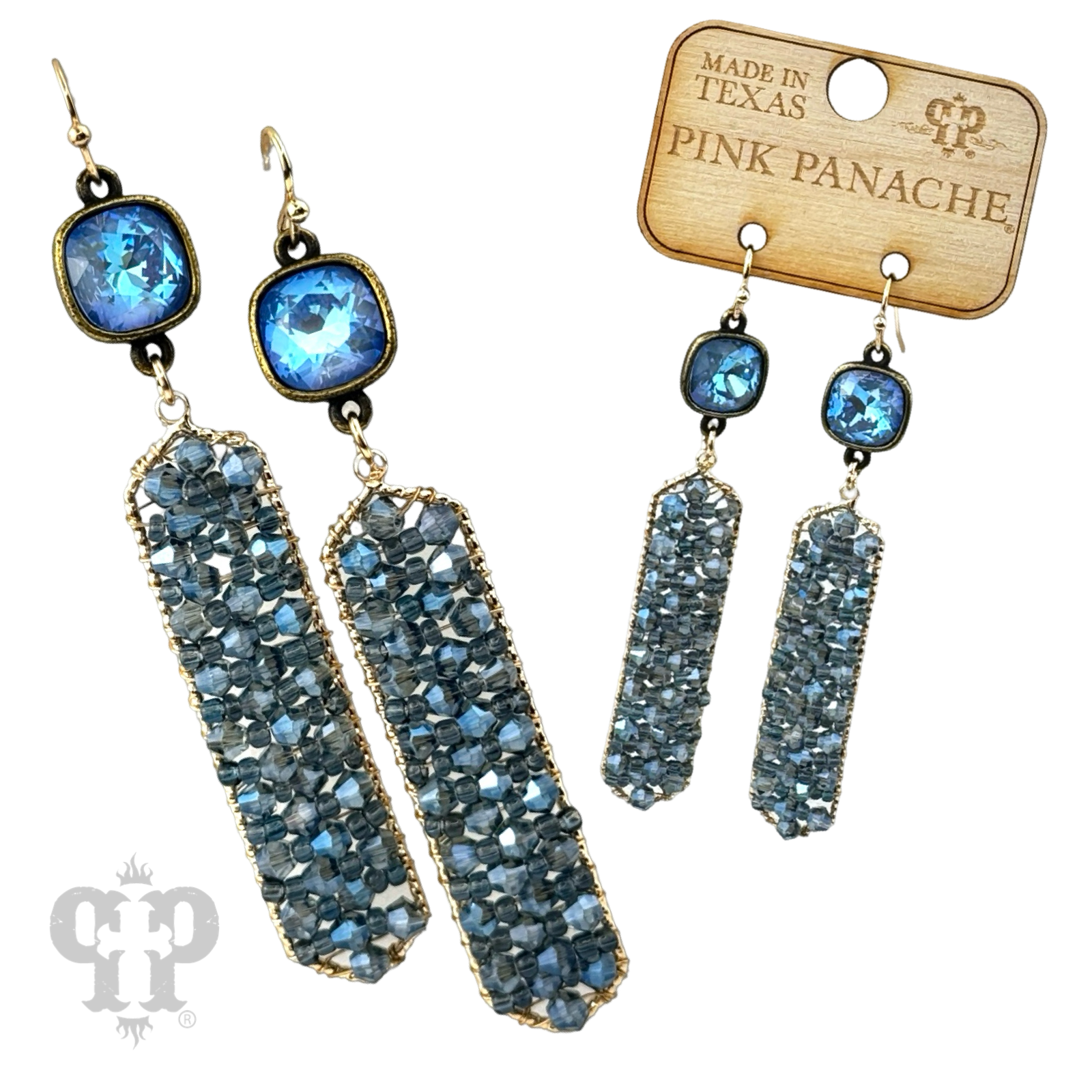 Bead wrapped hexagon dangle earring with Austrian crystal