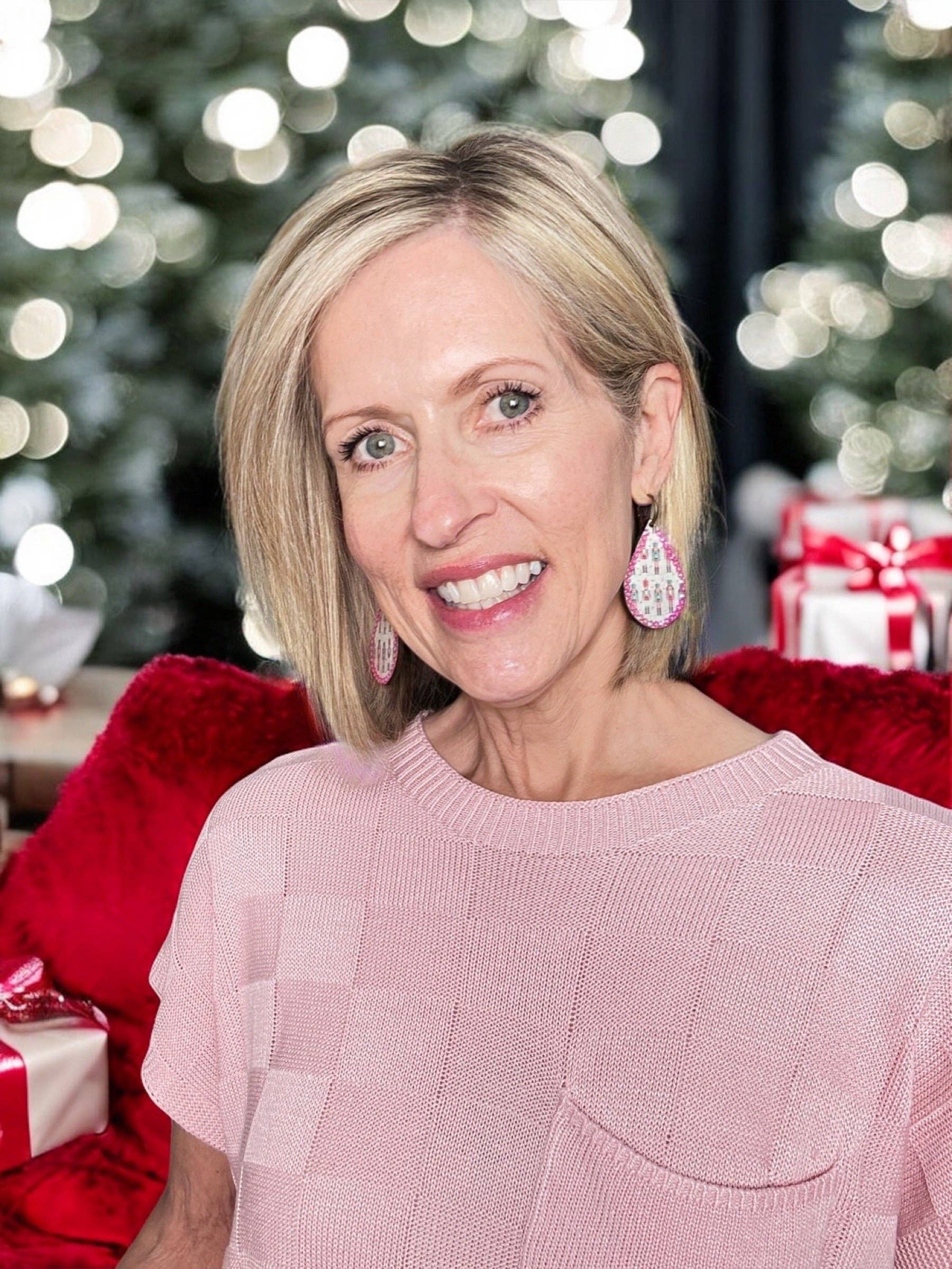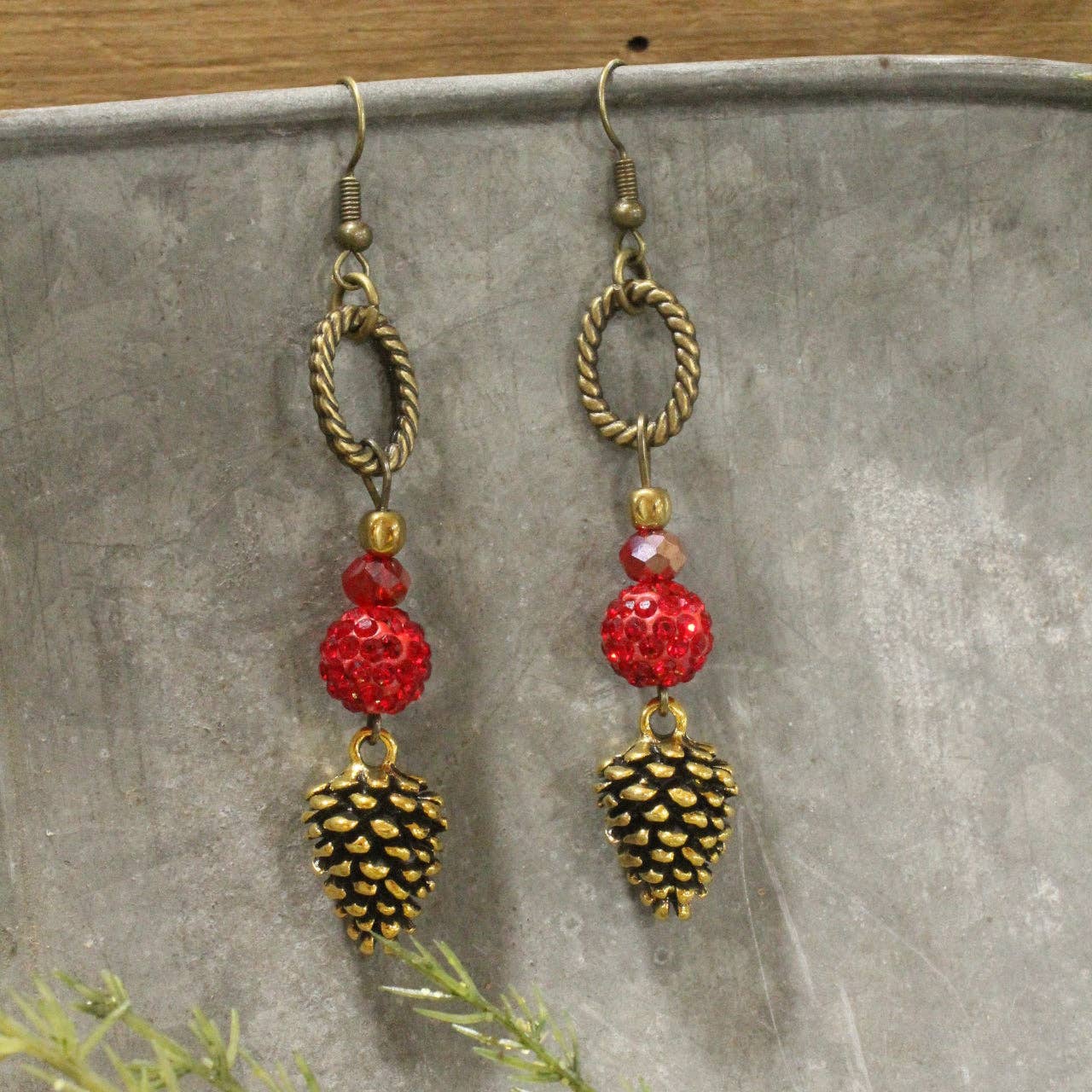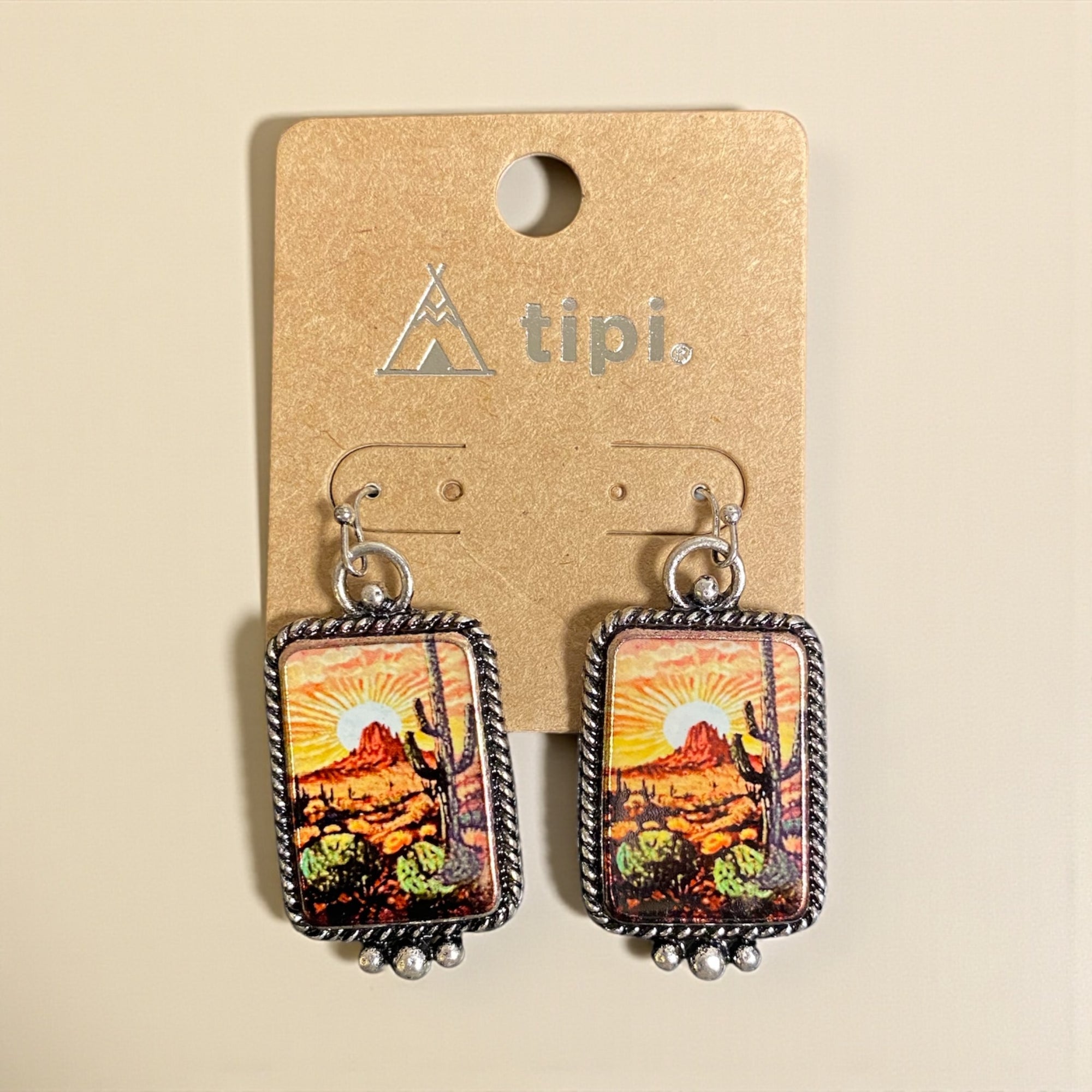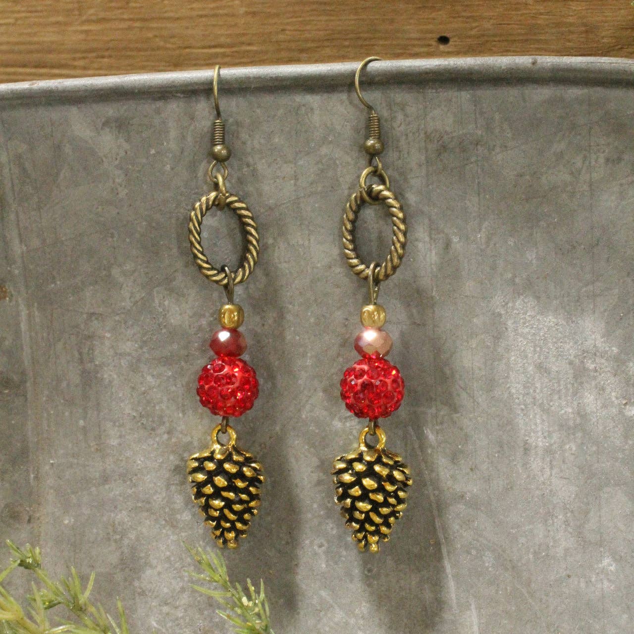 Bead wrapped hexagon dangle earring with Austrian crystal