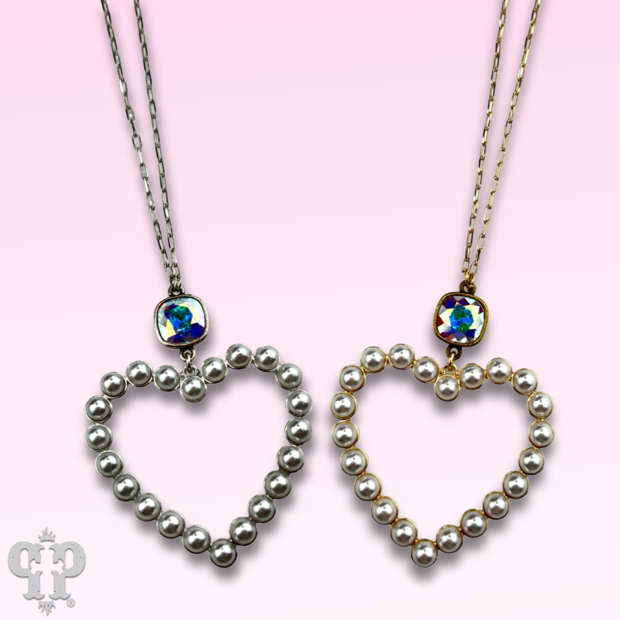Pearl open heart chain necklace with Austrian crystal