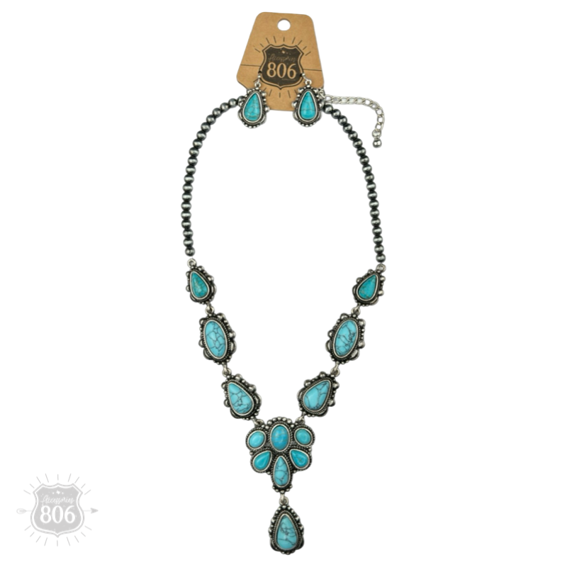 Western denim stone pendant necklace set