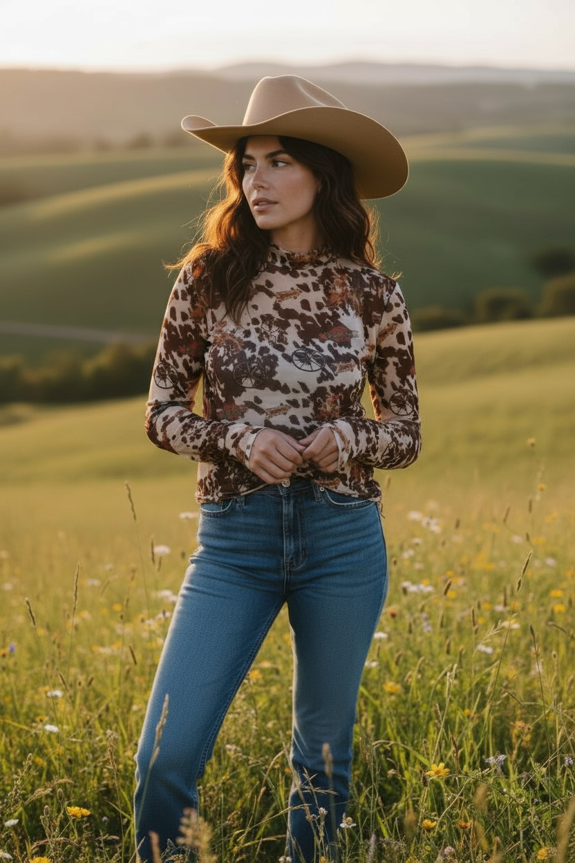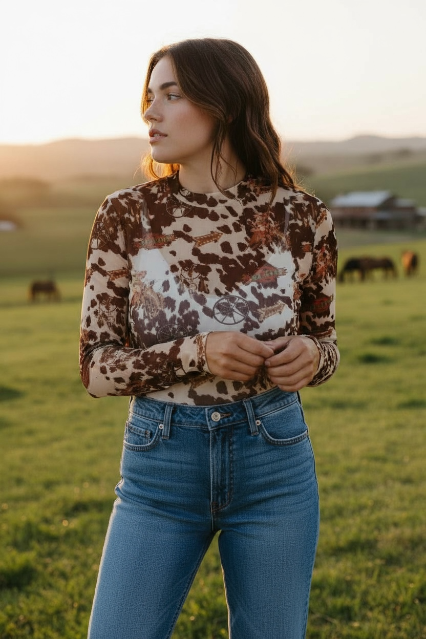 Cowhide Buckaroo LS Mesh Top